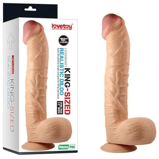 Фаллоимитатор королевского размера выполнен в реалистичном стиле Legendary King-sized Realistic Dildo с мошонкой и на присоске. Изделие таких размеров рекомендуется к применению только опытными пользователями.
