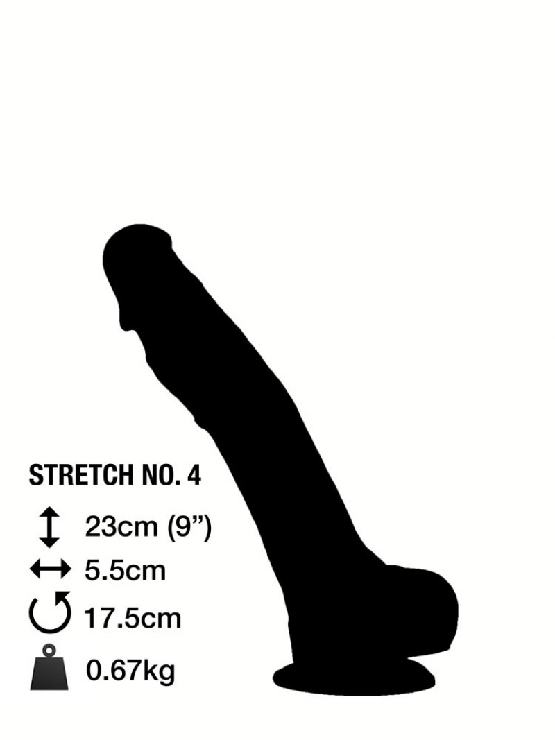 Stretch -дилдо изготовлены из 100% премиум силикона. Игрушка имеет мощную присоску, которая позволит крепко держаться и на вертикальной плоскости. Даря тем самым, вам замечательную возможность насладиться сольной игрой. Ствол фаллоса покрыт Flex прожилками (вены) это дает дополнительную приятную стимуляцию.